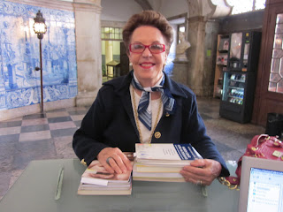 Aqui vamos nós, às 10 da manhã até à Biblioteca do Palácio Galveias . Tinhamos 10 livros para entregar e outros tantos para requisitar.
